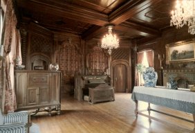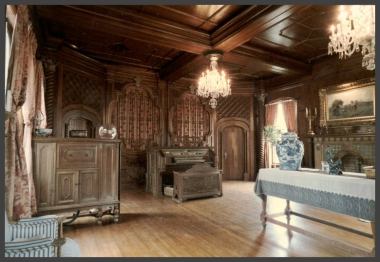 Pipe organ, music cabinet, and walnut interior all by Reuter