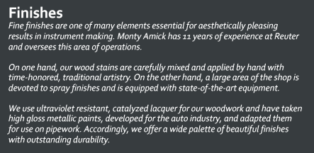 equipment. We use ultraviolet resistant, catalyzed lacquer for our