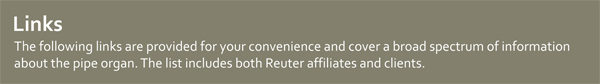 Links The following links are provided for your convenience and cover a broad spectrum of information about the pipe organ. The list includes both Reuter affiliates and clients.